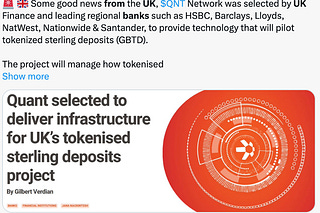 Banks have started using commercial bank money tokens (CBMT) - digital deposits typically on private blockchains - as a way for commercial banks to…